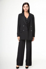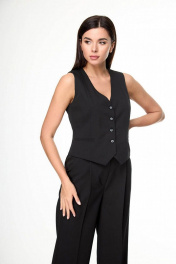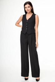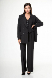 Многослойный костюм из вискозы: брюки, жакет и жилет для делового образа Anelli 1298 черный