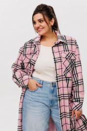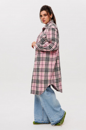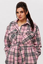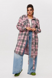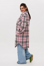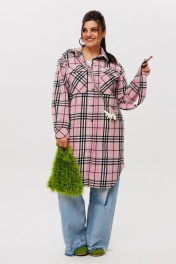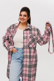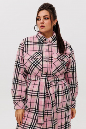Рубашка в клетку на подкладке, с поясом, длина миди Anelli 1338 розовый_кизил