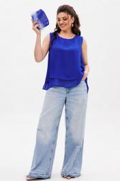 Добавьте ярких красок в свой гардероб с этой шифоновой блузой! Его свободный силуэт и умеренный объем создают комфорт и легкость, а асимметричная линия низа добавляет образу динамики и современности. Особенность этой модели — двойной слой ткани: укороченный верхний слой спереди создает эффект изящных ярусов, а удлиненная спинка придает топу оригинальность и легкость. Круглый вырез горловины подчеркивает женственность, а отсутствие рукавов делает эту блузу идеальной для теплых дней. Подарите себе настроение и легкость с этой невероятной моделью! Замеры: Размер 44: ОГ-98; ОБ-134; ДИ-69; Размер 46: ОГ-102; ОБ-138; ДИ-70; Размер 48: ОГ-106; ОБ-142; ДИ-70; Размер 50: ОГ-110; ОБ-146; ДИ-70; Размер 52: ОГ-114; ОБ-150; ДИ-70.