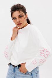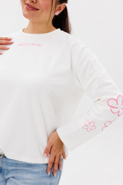 Лонгслив из хлопка с вышивкой и цветочным узором Anelli 1432 белый