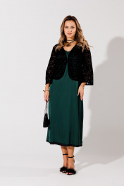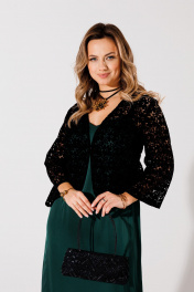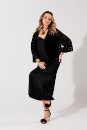Черное кружевное болеро – изысканный штрих, который добавит воздушности и элегантности вашему образу. Легкость и невесомость этого аксессуара, уютно обнимающего плечи, придают неповторимый шарм. Жакет на бархатной основе которого расположены утонченные узоры кружева, создавая игривый и женственный акцент. Это болеро идеально дополнит любое платье, превращая повседневный наряд в утонченный вечерний образ. Размер 52: ОГ-116; ДИ-47; ДР-46; ОП-40; Размер 54: ОГ-120; ДИ-48; ДР-46; ОП-42; Размер 56: ОГ-124; ДИ-49; ДР-46; ОП-44; Размер 58: ОГ-128; ДИ-50; ДР-46; ОП-46.