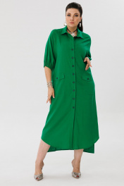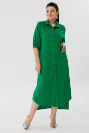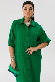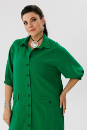 Льняное платье-рубашка, свободный крой, яркий зеленый Anelli 1456 малахит