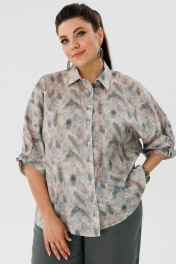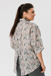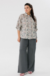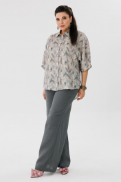 Льняной костюм блуза с рукавом летучая мышь и брюки с карманами Anelli 1465 перья+ базальтово-серый
