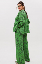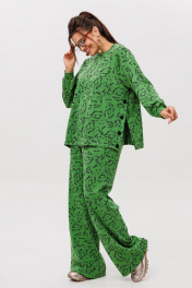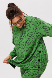 Трикотажный костюм от Анелли с анималистичным, ярким принтом – это идеальное сочетание стиля и комфорта для повседневного гардероба. Он включает в себя просторные брюки палаццо на круговой резинке, что обеспечивает удобную посадку и легкость в движении. Благодаря свободному крою и функциональным карманам, брюки смотрятся элегантно и практичны в носке. Свитшот с втачным рукавом дополняет комплект, а функциональные кнопки по бокам не только украшают изделие, но и позволяют регулировать его силуэт по своему желанию. Костюм создан для тех, кто ценит уют и практичность. Его можно носить как самостоятельный образ, так и комбинировать с другими вещами. В частности, костюм отлично сочетается с жилетом 1386, что добавляет образу многослойности и актуальности. Это незаменимая вещь в гардеробе, которую можно надевать как на прогулку, так и на неформальную встречу, оставаясь при этом стильной и уверенной в себе. Замеры: Размер 50: Свитшот: ОГ-120; ОБ-120; ОП-44; ДИ-63; ДР-54; ШП-14,5; Брюки: ОТ-104; ОБ-112; ДИ-111; ширина по низу - 64; Размер 52: Свитшот: ОГ-124; ОБ-124; ОП-44; ДИ-63; ДР-55; ШП-14,5; Брюки: ОТ-108; ОБ-116; ДИ-111; ширина по низу - 64; Размер 54: Свитшот: ОГ-128; ОБ-128; ОП-44; ДИ-65; ДР-54; ШП-14,5; Брюки: ОТ-112; ОБ-120; ДИ-112; ширина по низу - 66; Размер 56: Свитшот: ОГ-132; ОБ-132; ОП-46; ДИ-65; ДР-53; ШП-14,5; Брюки: ОТ-116; ОБ-124; ДИ-111; ширина по низу - 66; Размер 58: Свитшот: ОГ-136; ОБ-136; ОП-46; ДИ-67; ДР-53; ШП-15,5; Брюки: ОТ-120; ОБ-128; ДИ-112; ширина по низу - 68; Размер 60: Свитшот: ОГ-140; ОБ-140; ОП-46; ДИ-66; ДР-54; ШП-15,5; Брюки: ОТ-124; ОБ-132; ДИ-112; ширина по низу - 68.
