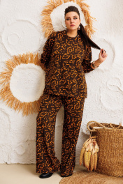 Демисезонный костюм из вискозы и трикотажа, брюки палаццо и свитшот Anelli 1494 жираф