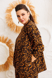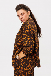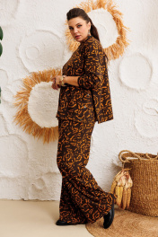 Трикотажный костюм от Анелли с анималистичным, ярким принтом – это идеальное сочетание стиля и комфорта для повседневного гардероба. Он включает в себя просторные брюки палаццо на круговой резинке, что обеспечивает удобную посадку и легкость в движении. Благодаря свободному крою и функциональным карманам, брюки смотрятся элегантно и практичны в носке. Свитшот с втачным рукавом дополняет комплект, а функциональные кнопки по бокам не только украшают изделие, но и позволяют регулировать его силуэт по своему желанию. Костюм создан для тех, кто ценит уют и практичность. Его можно носить как самостоятельный образ, так и комбинировать с другими вещами. В частности, костюм отлично сочетается с жилетом 1386, что добавляет образу многослойности и актуальности. Это незаменимая вещь в гардеробе, которую можно надевать как на прогулку, так и на неформальную встречу, оставаясь при этом стильной и уверенной в себе. Замеры: Размер 50: Свитшот: ОГ-120; ОБ-120; ОП-44; ДИ-63; ДР-54; ШП-14,5; Брюки: ОТ-104; ОБ-112; ДИ-111; ширина по низу - 64; Размер 52: Свитшот: ОГ-124; ОБ-124; ОП-44; ДИ-63; ДР-55; ШП-14,5; Брюки: ОТ-108; ОБ-116; ДИ-111; ширина по низу - 64; Размер 54: Свитшот: ОГ-128; ОБ-128; ОП-44; ДИ-65; ДР-54; ШП-14,5; Брюки: ОТ-112; ОБ-120; ДИ-112; ширина по низу - 66; Размер 56: Свитшот: ОГ-132; ОБ-132; ОП-46; ДИ-65; ДР-53; ШП-14,5; Брюки: ОТ-116; ОБ-124; ДИ-111; ширина по низу - 66; Размер 58: Свитшот: ОГ-136; ОБ-136; ОП-46; ДИ-67; ДР-53; ШП-15,5; Брюки: ОТ-120; ОБ-128; ДИ-112; ширина по низу - 68; Размер 60: Свитшот: ОГ-140; ОБ-140; ОП-46; ДИ-66; ДР-54; ШП-15,5; Брюки: ОТ-124; ОБ-132; ДИ-112; ширина по низу - 68
