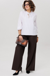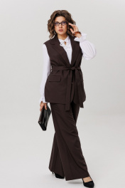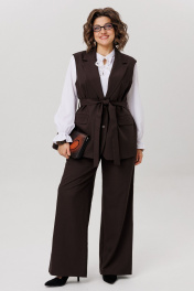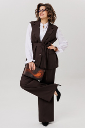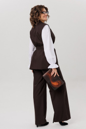 Этот элегантный костюм, состоящий из жилета и брюк, воплощает в себе утонченность и уверенность. Полуприлегающий силуэт жилета мягко подчеркивает линии фигуры, создавая гармоничный баланс между строгостью и женственностью. Однобортная застёжка на петли и пуговицы придает образу аккуратность и завершенность, а отложные лацканы воротника добавляют ноту классической сдержанности. Прорезные карманы с клапанами не только делают жилет функциональным, но и подчеркивают его безупречный крой. Удлиненный пояс, плавно перетекающий в линию низа, визуально вытягивает силуэт, придавая ему еще больше элегантности. Брюки палаццо с высокой посадкой и резинкой по спинке обеспечивают комфорт и идеальную посадку, мягко облегая фигуру без стеснения движений. Боковые карманы добавляют практичности, сохраняя при этом чистоту линий. Широкие штанины струятся с грациозной легкостью, создавая эффект непринуждённой роскоши. Костюм от Анелли сидит безупречно, подчеркивая достоинства фигуры и даря ощущение уверенности в каждой детали. Его универсальность позволяет сочетать жилет с облегающим топом для дерзкого современного образа или с классической рубашкой для более строгого стиля. Брюки легко вписываются как в повседневные, так и в деловые ансамбли, сохраняя безупречный вид в любой ситуации. Этот костюм — воплощение стиля и власти над собственным образом. В нем каждая женщина чувствует себя собранной, элегантной и неотразимой, будь то важная встреча или повседневный выход в свет. На модели в костюме «блестящий каштан» блуза 1281. Рост модели 173 см, размер 52. Для того чтобы подобрать для себя идеальный размер, обязательно сверяйтесь с замерами в описании, мы их делаем индивидуально к каждому изделию. А если будут вопросы задавайте их менеджерам или пишите в отдел заботы. Замеры: Размер 50: Жилет: ОГ-114; ОТ-110; ОБ-116; ДИ-73; Брюки: ОТ-86; ОБ-112; ДИ-109; ширина по низу – 62; Размер 52: Жилет: ОГ-119; ОТ-115; ОБ-121; ДИ-73; Брюки: ОТ-90; ОБ-116; ДИ-109; ширина по низу – 64; Размер 54: Жилет: ОГ-124; ОТ-120; ОБ-126; ДИ-73; Брюки: ОТ-94; ОБ-120; ДИ-109; ширина по низу – 64; Размер 56: Жилет: ОГ-129; ОТ-125; ОБ-131; ДИ-73; Брюки: ОТ-98; ОБ-124; ДИ-109; ширина по низу – 66; Размер 58: Жилет: ОГ-134; ОТ-130; ОБ-136; ДИ-73; Брюки: ОТ-102; ОБ-128; ДИ-109; ширина по низу – 66; Размер 60: Жилет: ОГ-139; ОТ-135; ОБ-141; ДИ-74; Брюки: ОТ-106; ОБ-132; ДИ-109; ширина по низу – 66;
