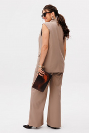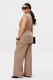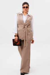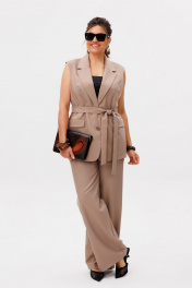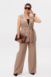 Этот элегантный костюм, состоящий из жилета и брюк, воплощает в себе утонченность и уверенность. Полуприлегающий силуэт жилета мягко подчеркивает линии фигуры, создавая гармоничный баланс между строгостью и женственностью. Однобортная застёжка на петли и пуговицы придает образу аккуратность и завершенность, а отложные лацканы воротника добавляют ноту классической сдержанности. Прорезные карманы с клапанами не только делают жилет функциональным, но и подчеркивают его безупречный крой. Удлиненный пояс, плавно перетекающий в линию низа, визуально вытягивает силуэт, придавая ему еще больше элегантности. Брюки палаццо с высокой посадкой и резинкой по спинке обеспечивают комфорт и идеальную посадку, мягко облегая фигуру без стеснения движений. Боковые карманы добавляют практичности, сохраняя при этом чистоту линий. Широкие штанины струятся с грациозной легкостью, создавая эффект непринуждённой роскоши. Костюм от Анелли сидит безупречно, подчеркивая достоинства фигуры и даря ощущение уверенности в каждой детали. Его универсальность позволяет сочетать жилет с облегающим топом для дерзкого современного образа или с классической рубашкой для более строгого стиля. Брюки легко вписываются как в повседневные, так и в деловые ансамбли, сохраняя безупречный вид в любой ситуации. Этот костюм — воплощение стиля и власти над собственным образом. В нем каждая женщина чувствует себя собранной, элегантной и неотразимой, будь то важная встреча или повседневный выход в свет. На модели в костюме цвета «тосканский песок» белая рубашка 1412.1 и топ 767. Рост модели 173 см, размер 52. Для того чтобы подобрать для себя идеальный размер, обязательно сверяйтесь с замерами в описании, мы их делаем индивидуально к каждому изделию. А если будут вопросы задавайте их менеджерам или пишите в отдел заботы. Замеры: Размер 50: Жилет: ОГ-114; ОТ-110; ОБ-116; ДИ-73; Брюки: ОТ-86; ОБ-112; ДИ-109; ширина по низу - 62; Размер 52: Жилет: ОГ-119; ОТ-115; ОБ-121; ДИ-73; Брюки: ОТ-90; ОБ-116; ДИ-109; ширина по низу - 64; Размер 54: Жилет: ОГ-124; ОТ-120; ОБ-126; ДИ-73; Брюки: ОТ-94; ОБ-120; ДИ-109; ширина по низу - 64; Размер 56: Жилет: ОГ-129; ОТ-125; ОБ-131; ДИ-73; Брюки: ОТ-98; ОБ-124; ДИ-109; ширина по низу - 66; Размер 58: Жилет: ОГ-134; ОТ-130; ОБ-136; ДИ-73; Брюки: ОТ-102; ОБ-128; ДИ-109; ширина по низу - 66; Размер 60: Жилет: ОГ-139; ОТ-135; ОБ-141; ДИ-74; Брюки: ОТ-106; ОБ-132; ДИ-109; ширина по низу - 66;