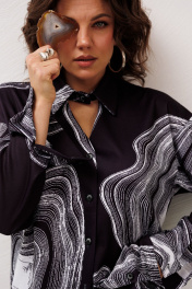 «Мраморная рубашка» от Анелли - это сочетание расслабленной элегантности и выразительного характера, которое делает образ особенным с первого взгляда. Прямой силуэт мягко ложится по фигуре, создавая ощущение свободы и уверенности, а отложной воротник на стойке добавляет утончённости и благородства. Спущенное плечо и длинные рукава на манжетах придают образу непринуждённую женственность, а фигурный низ делает силуэт интересным и современным. Особое внимание привлекает необычный и уникальный принт - стильный, выразительный, созданный для тех, кто любит выделяться даже в повседневности. Рубашку легко носить каждый день, сочетая с базовыми вещами или создавая более яркие образы. Её можно приобрести отдельно или дополнить брюками 1514.2, или собрав полноценный костюм 1514, который выглядит особенно эффектно и гармонично. Состав: вискоза 60% полиэстер 40%; Замеры: Размер 50: ОГ-120; ОБ-124; ОП-54; ДИ-78; ДР-53; ШП-21; Размер 52: ОГ-124; ОБ-128; ОП-53; ДИ-78; ДР-53; ШП-21,5; Размер 54: ОГ-128; ОБ-132; ОП-54; ДИ-78; ДР-53; ШП-22; Размер 56: ОГ-132; ОБ-136; ОП-56; ДИ-79; ДР-53; ШП-23; Размер 58: ОГ-136; ОБ-140; ОП-58; ДИ-79; ДР-53; ШП-23,5; Размер 60: ОГ-140; ОБ-144; ОП-58; ДИ-79; ДР-53; ШП-23,5;