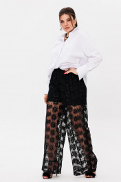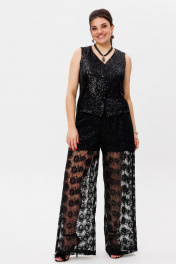 Уникальные брюки от Анелли, которые станут настоящим акцентом вашего гардероба. Эти дерзкие и эффектные брюки на резинке по талии идеально сочетают в себе красоту и стиль. Внутренняя подкладка в виде шортиков обеспечивает свободу движений и дополнительный комфорт, позволяя вам наслаждаться каждым моментом. Изготовленные из изысканного гипюра, эти прозрачные брюки украшены сверкающими пайетками, которые ловят свет и создают невероятный блеск при каждом вашем шаге. Их необычный дизайн не оставит равнодушными окружающих — вы будете в центре внимания на любом мероприятии, будь то вечерняя встреча, коктейльная вечеринка или светское событие. Станьте звездой вечера с этими брюками, которые подчеркивают вашу индивидуальность и стиль. Позвольте себе быть смелой и выразительной — каждый взгляд будет прикован к вам, а восхищенные комплименты станут вашим постоянным спутником! На модели топ 1429, блузон из пайеток 1522, жилет 1500, рубашка 1203 и жакет 1470. Замеры: Размер 46: ОТ (резинка растянута) - 92; ОБ-106; ДИ брюк - 108; ДИ шорт - 35; ширина по низу - 64; Размер 48: ОТ (резинка растянута) - 96; ОБ-110; ДИ брюк - 109; ДИ шорт - 36; ширина по низу - 64; Размер 50: ОТ (резинка растянута) - 100; ОБ-114; ДИ брюк - 108; ДИ шорт - 36; ширина по низу - 67; Размер 52: ОТ (резинка растянута) - 104; ОБ-118; ДИ брюк - 109; ДИ шорт - 36; ширина по низу - 67; Размер 54: ОТ (резинка растянута) - 108; ОБ-122; ДИ брюк - 110; ДИ шорт - 38; ширина по низу - 70; Размер 56: ОТ (резинка растянута) - 114; ОБ-126; ДИ брюк - 110; ДИ шорт - 38; ширина по низу - 72.