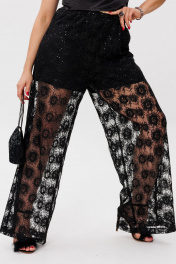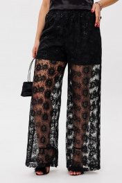Черные кружевные брюки-палаццо с пайетками, эффектные, нарядные Anelli 1517 роскошь