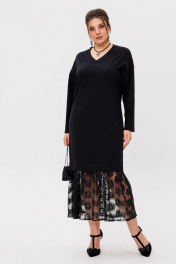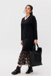 Платье-универсал с V-образным вырезом и гипюром Anelli 1518 ворона