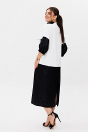 Это элегантное платье с прямым силуэтом станет идеальным дополнением вашего гардероба. Оно выполнено из легкой ткани с изысканным принтом, который добавляет наряду оригинальности и шарма. Цельнокроеный рукав-кимоно обеспечивает свободу движений и комфорт, а манжет на резинке придает образу изысканность. Удобный разрез по спинке добавляет нотку кокетства, а пояс подчеркивает талию, создавая женственный силуэт. V-образный вырез горловины элегантно открывает шею, делая образ еще более привлекательным. Это платье от Анелли идеально подойдет как для вечернего выхода, так и для более неформальных мероприятий, позволяя вам чувствовать себя уверенно и стильно в любой ситуации. Не упустите шанс добавить это великолепное платье в свой гардероб — покупайте прямо сейчас! На модели болеро 1445 и блузон 1522 Замеры: Размер 50: ОГ-110; ОБ-114; ОП-52; ДИ-122; ДР-53; Размер 52: ОГ-114; ОБ-120; ОП-52; ДИ-122; ДР-54; Размер 54: ОГ-118; ОБ-124; ОП-54; ДИ-123; ДР-53; Размер 56: ОГ-122; ОБ-128; ОП-56; ДИ-123; ДР-55; Размер 58: ОГ-126; ОБ-132; ОП-58; ДИ-124; ДР-54; Размер 60: ОГ-130; ОБ-136; ОП-60; ДИ-124; ДР-55.