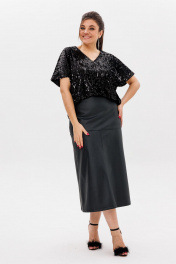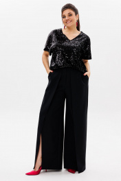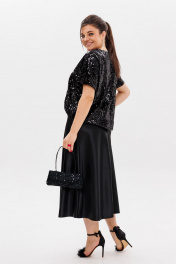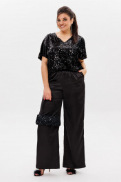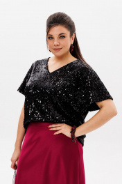 Круглогодичная черная блузка из пайеток с V-образным вырезом Anelli 1522 ликер