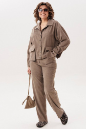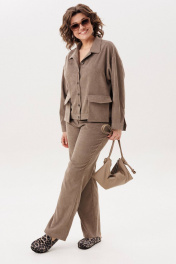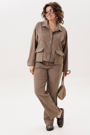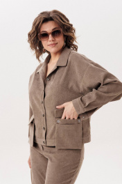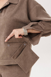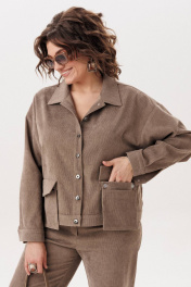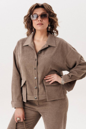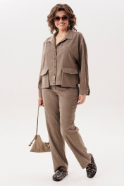 Джут цвета «кедрового ореха» из мягкого штрукса создан для повседневного комфорта и стильной многослойности. Свободный крой со спущенной линией плеча придаёт образу расслабленность и лёгкость, а длинный рукав с манжетой на петлю и пуговицу аккуратно завершает силуэт. Застёжка на петли и пуговицы делает модель практичной и универсальной, а два съёмных кармана на кнопках добавляют функциональности и позволяют менять настроение изделия. Этот джут невероятно удобный и приятный в носке: его можно сочетать с брюками 1815 из той же ткани для цельного образа или накидывать поверх платья, создавая уютный и современный повседневный стиль. На модели брюки 1815. Замеры: Размер 48: ОГ-116; ОБ-112; ОП-50; ДИ-55; ДР-50; ШП-21.5; Размер 50: ОГ-120; ОБ-116; ОП-52; ДИ-57; ДР-50; ШП-22; Размер 52: ОГ-124; ОБ-120; ОП-52; ДИ-57; ДР-49; ШП-22; Размер 54: ОГ-128; ОБ-124; ОП-54; ДИ-57; ДР-49; ШП-22,5; Размер 56: ОГ-132; ОБ-128; ОП-56; ДИ-58; ДР-49; ШП-23; Размер 58: ОГ-136; ОБ-132; ОП-56; ДИ-58; ДР-48; ШП-23,5; Размер 60: ОГ-140; ОБ-136; ОП-58; ДИ-59; ДР-48; ШП-24; Размер 62: ОГ-144; ОБ-140; ОП-60; ДИ-60; ДР-48; ШП-24,5;