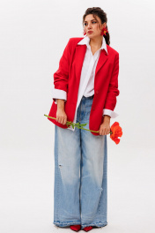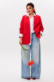 Жакет от Анелли из беларусского льна сочетает в себе строгую элегантность и природную лёгкость, словно соткан из самого духа беларусских полей. Модель выполнена из натурального льна высшего качества, который с каждой ноской становится ещё мягче и приятнее к телу. Внутренняя часть жакета отделана хлопковой подкладкой, обеспечивающей комфорт даже в тёплую погоду. Функциональный прорезной карман с клапаном добавляет лаконичную деталь, сохраняя чистоту линий. Втачной рукав подчёркивает аккуратность кроя, а английский воротник придаёт образу благородную сдержанность. Этот жакет — универсальная вещь, которая легко дополнит как повседневный, так и более формальный образ. Его можно носить с хлопковой рубашкой и брюками палаццо для стильного casual-лука, сочетать с лёгким льняным платьем для романтичного настроения или накинуть поверх тонкого джемпера с классическими джинсами для элегантной непринуждённости. Идеальный спутник для летних прогулок, встреч в городе и загородного отдыха. На модели в жакете цвета «марс» рубашка 1203.1. Замеры: Размер 50: ОГ-114; ОТ-110; ОБ-116; ОП-40; ДИ-72; ДР-60; Размер 52: ОГ-118; ОТ-114; ОБ-122; ОП-41; ДИ-72; ДР-60; Размер 54: ОГ-124; ОТ-118; ОБ-128; ОП-42; ДИ-72; ДР-60; Размер 56: ОГ-128; ОТ-122; ОБ-132; ОП-43; ДИ-72; ДР-60; Размер 58: ОГ-132; ОТ-128; ОБ-136; ОП-45; ДИ-72; ДР-60; Размер 60: ОГ-136; ОТ-132; ОБ-140; ОП-46; ДИ-72; ДР-60;