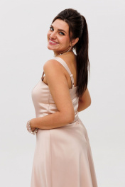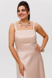 Этот топ из атласа станет любимой базовой вещью в вашем гардеробе. Его главное преимущество — универсальность: он одинаково хорошо сочетается и с деловым жакетом, и с легкой летней рубашкой. Регулируемые бретели позволяют точно настроить посадку под особенности фигуры. Атласная ткань приятно скользит по коже. Аккуратная потайная молния сбоку делает процесс надевания удобным, не нарушая чистоту линий. Топ сохраняет форму в течение дня, не мнется и не теряет вид. Гладкая поверхность атласа создает эффектную основу для любых верхних слоев одежды, будь то полупрозрачная блуза или плотный пиджак. В этом топе от Анелли вы будете чувствовать себя комфортно в любой ситуации — от офисных встреч до вечерних выходов. Его лаконичный дизайн и качественные материалы делают его практичным выбором для повседневной носки. На модели в топе цвета "шампань" юбка 1291 и болера 1445. Замеры: Размер 42: ОГ-84; ОТ-68; ДИ по боку - 21,5; Размер 44: ОГ-86; ОТ-74; ДИ по боку - 21,5; Размер 46: ОГ-90; ОТ-80; ДИ по боку - 21,5; Размер 48: ОГ-94; ОТ-86; ДИ по боку - 21,5.