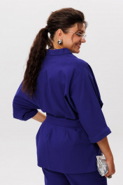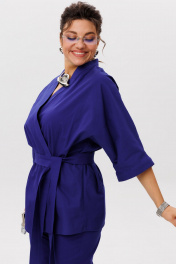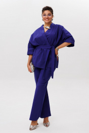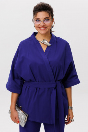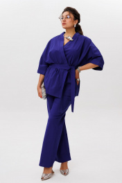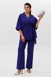 Пурпурно синий» — цвет, который говорит сам за себя. И это не просто костюм, а готовое настроение — лёгкое, солнечное, без лишних слов. Кимоно свободного кроя с фигурным запахом мягко драпируется, подчёркивая силуэт, но не сковывая его. Рукав 3/4 с широкой манжетой добавляет динамики, а отсутствие застёжек делает образ ещё более непринуждённым. Съёмный пояс позволяет варьировать степень выразительности. Брюки на резинке с расширением к низу и скрытыми карманами сохраняют баланс между комфортом и стилем. Они не утяжеляют образ, а, наоборот, придают ему лёгкую летящую пластику. Этот костюм от Анелли — про смелость, про лето, про то, как цвет может стать комплиментом всему, что вас окружает. Надеваете — и сразу чувствуете, как день становится ярче. Замеры: Размер 48: Кимоно: ОГ-122; ОБ-122; ОП-56; ДИ-72; ДР-54; Брюки: ОТ-94; ОБ-110; ДИ-107; ширина по низу - 56; Размер 50: Кимоно: ОГ-126; ОБ-126; ОП-56; ДИ-72; ДР-54; Брюки: ОТ-98; ОБ-114; ДИ-108; ширина по низу - 56; Размер 52: Кимоно: ОГ-130; ОБ-130; ОП-56; ДИ-72; ДР-54; Брюки: ОТ-100; ОБ-118; ДИ-108; ширина по низу - 57; Размер 54: Кимоно: ОГ-134; ОБ-134; ОП-56; ДИ-72; ДР-54; Брюки: ОТ-102; ОБ-122; ДИ-108; ширина по низу - 58; Размер 56: Кимоно: ОГ-138; ОБ-138; ОП-56; ДИ-72; ДР-54; Брюки: ОТ-104; ОБ-126; ДИ-108; ширина по низу - 58;