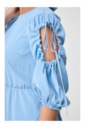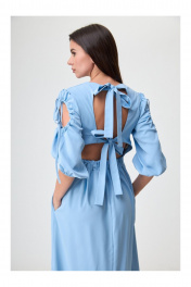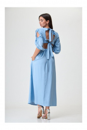 Воздушное платье для незабываемых моментов от Анелли. Это платье — сама нежность, воплощенная в струящихся оттенках весенней мяты и лазурного неба. Его прямой силуэт мягко обволакивает фигуру, создавая ощущение невесомости, а удлиненный крой придает образу особую поэтичность и грацию. Спину украшает изысканный вырез с двумя воздушными бантами, которые словно бабочки готовы вспорхнуть при каждом вашем движении. Рукава-три четверти с нежными сборами и ажурными разрезами, подчеркнутыми тончайшими шнуровками, добавляют образу романтичную таинственность. Мягкая резинка по талии деликатно подчеркивает силуэт, не нарушая плавных линий этого совершенного наряда. В этом платье вы почувствуете себя героиней старинного романа — утонченной, загадочной и невероятно женственной. Идеально для особых моментов, когда важна каждая деталь: свадебных торжеств, романтических ужинов при свечах или тех волшебных вечеров, что остаются в памяти навсегда. Нежные переливы оттенков подчеркнут свежесть вашего образа, делая кожу сияющей, а взгляд — особенно выразительным. Это платье создано для тех, кто верит, что настоящая красота — в гармонии изящества и легкости. Для тех, кто выбирает не просто наряд, а настоящее произведение искусства. Замеры (резинка растянута): Размер 44: ОГ-92; ОТ-88; ОБ-118; ОП-44; ДИ-130; ДР-41; Размер 46: ОГ-96; ОТ-92; ОБ-122; ОП-45; ДИ-132; ДР-42; Размер 48: ОГ-100; ОТ-96; ОБ-126; ОП-46; ДИ-134; ДР-43;