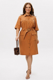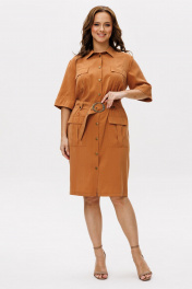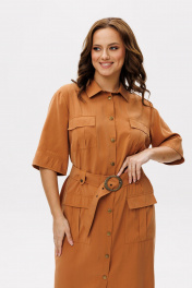 Платье в духе сафари для тех, кто ценит гармонию функциональности и элегантности. В его лаконичном дизайне сочетаются проверенная временем классика и современный подход к деталям. Четкий прямой силуэт платья подчеркивает женственность, сохраняя свободу движений. Втачной короткий рукав с аккуратной манжетой и рубашечный воротник на стойке придают образу собранность и завершенность. Практичность здесь сочетается с эстетикой – застежка на кнопках по всей длине позволяет легко регулировать степень открытости, а настрочные карманы с клапанами добавляют характерный штрих сафари-эстетики. Съемный пояс на пряжке дает возможность варьировать образ – от строгого делового до более непринужденного варианта. Созданное из мягкой ткани с добавлением натуральных волокон, это платье обеспечивает комфорт в течение всего дня. Универсальный крой делает его идеальным выбором для любой фигуры, подчеркивая достоинства и сохраняя безупречный силуэт. Это платье одинаково уместно и в городской суете, и на загородной прогулке, даря своей обладательнице ощущение уверенности и безупречного вкуса. Замеры: Размер 54: ОГ-111; ОТ-108; ОБ-120; ОП-38; ДИ-97; ДР-31; Размер 56: ОГ-116; ОТ-112; ОБ-124; ОП-40; ДИ-97; ДР-32; Размер 58: ОГ-120; ОТ-116; ОБ-128; ОП-40; ДИ-100; ДР-32;