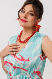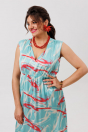 Это платье словно создано для того, чтобы в нём рождались особенные моменты. Его крой - это история о том, как форма следует за комфортом: прямой силуэт, который к подолу становится чуть шире, не сковывает, а позволяет двигаться легко и естественно, словно ты не замечаешь на себе одежды. Длина миди дарит ощущение скромной элегантности, оставляя пространство для воображения. Взгляд скользит выше, к V-образному вырезу - он задаёт настроение всему образу, делая его более открытым и утончённым. А там, где обычно встречаются строгие линии, дизайнер предлагает игру: линия талии спереди мягко стянута резинкой, создавая естественную, живую драпировку вместо статичного узла. Спинка, также собранная на резинку, послушно повторяет каждый изгиб, даря идеальную посадку без лишнего натяжения. Продуманный разрез в переднем шве - это не просто деталь, а настоящее приглашение к движению: ты можешь идти широким шагом, танцевать или просто кружиться, зная, что платье последует за тобой. И, конечно, дизайнерский принт «кораллы в море» - главный голос этого наряда. Его актуальная расцветка становится твоим настроением на весь день: то ли нежная акварель, то ли смелая графика, она притягивает взгляды и делает образ завершённым даже с минимальным количеством аксессуаров. Это платье от Анелли для той женщины, которая выбирает быть романтичной, красивой и чувствовать себя при этом абсолютно комфортно. Размер 48: ОГ-102; ОТ (резинка растянута) - 104; ОБ-116; ДИ-117; Размер 50: ОГ-106; ОТ (резинка растянута) - 108; ОБ-120; ДИ-117; Размер 52: ОГ-110; ОТ (резинка растянута) - 112; ОБ-124; ДИ-116; Размер 54: ОГ-114; ОТ (резинка растянута) - 116; ОБ-128; ДИ-117.