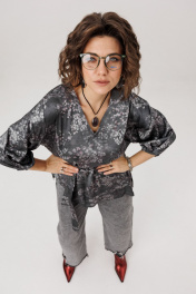 Этот блузон от Анелли в цвете «графитовый гербарий» создан для тех, кто ценит в вещах и стиль, и универсальность. Свободный крой и мягкая линия спущенного плеча дарят непревзойдённый комфорт, а элегантный V-вырез удлиняет шею, создавая женственный акцент. Укороченный рукав, собранный на резинке, добавляет образу лёгкую игривость и динамику. Главная особенность этой модели — продуманная многозадачность. Пояс в комплекте позволяет вам самостоятельно создавать нужный образ: затяните его, чтобы подчеркнуть талию и создать фигуру «песочные часы», или отпустите для расслабленного силуэта в стиле бохо. Завершает картину асимметричный низ с разрезом — деталь, которая делает блузу по-настоящему уникальной и визуально вытягивает силуэт. Это идеальная вещь-трансформер, которая подстроится под ваше настроение, легко переходя из дневного образа в вечерний. Размер 52: ОГ-120; ОБ-128; ОП-56; ДИ по спинке – 74; ДР-29; ШП-28; ДИ полочки – 75; Размер 54: ОГ-124; ОБ-132; ОП-57; ДИ по спинке – 75; ДР-28; ШП-29; ДИ полочки – 76; Размер 56: ОГ-130; ОБ-138; ОП-58; ДИ по спинке – 76; ДР-28; ШП-29; ДИ полочки – 77; Размер 58: ОГ-134; ОБ-142; ОП-60; ДИ по спинке – 77; ДР-28; ШП-30; ДИ полочки – 78; Размер 60: ОГ-138; ОБ-146; ОП-62; ДИ по спинке – 77; ДР-27; ШП-31; ДИ полочки – 78; Размер 62: ОГ-142; ОБ-150; ОП-62; ДИ по спинке – 78; ДР-27; ШП-32; ДИ полочки – 79.