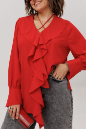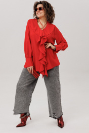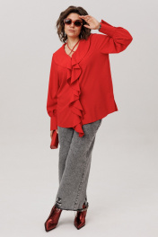 Эта блуза от Анелли — воплощение нежной романтики и воздушной лёгкости. Её прямой свободный крой струится мягкими складками, создавая изящный и непринуждённый силуэт, а лёгкая воздушность ткани придаёт образу пленительную невесомость. Глубокий V-образный вырез, украшенный воланами, подчеркивает изысканно-романтичный характер блузы. Эту историю дополняет игра завязок: их можно распустить для непринуждённой элегантности или завязать на шее, чтобы подчеркнуть трогательную женственность. Мягкие сборки на длинных рукавах, переходящие в аккуратные манжеты, и лёгкие разлетающиеся разрезы по бокам завершают картину, делая каждый жест и каждое движение частью изящного и мечтательного стиля. Красный в цвете "Купидон" - это не просто оттенок, это настроение. В нём есть и дерзость страсти, и мягкость первого чувства. Идеальный выбор для тех, кто хочет говорить без слов. Размер 48: ОГ-112; ОТ-116; ОБ-120; ОП-40; ДИ-72; ДР-64; Размер 50: ОГ-116, ОТ-120, ОБ-124, ОП-42, ДИ-73, ДР-65; Размер 52: ОГ-120, ОТ-124, ОБ-128, ОП-44, ДИ-74, ДР-65; Размер 54: ОГ-124, ОТ-128, ОБ-132, ОП-46, ДИ-74, ДР-64; Размер 56: ОГ-128, ОТ-132, ОБ-136, ОП-48, ДИ-74, ДР-64; Размер 58: ОГ-132, ОТ-136, ОБ-140, ОП-50, ДИ-74, ДР-65; Размер 60: ОГ-136, ОТ-140, ОБ-144, ОП-50, ДИ-75, ДР-64; Размер 62: ОГ-140, ОТ-144, ОБ-148, ОП-52, ДИ-75, ДР-65.