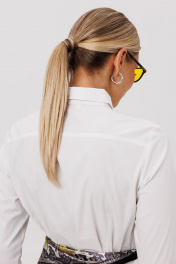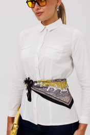 Классическая блуза отличается строгим и лаконичным дизайном. Ее передняя часть оформлена нагрудными вытачками, идущими от низа, и дополнена накладными карманами с закругленными краями. Спинка модели имеет талевые вытачки и цельнокроеную кокетку, которая плавно переходит на полочку, обеспечивая идеальную посадку по фигуре. Блузка застегивается на пуговицы по цельнокроеной планке и завершается воротником на стойке. Рукава являются втачными и заканчиваются манжетами с застежкой на пуговицу, что позволяет регулировать их ширину с помощью специальной паты. Эта модель станет универсальным элементом гардероба, подходящим для повседневной носки, учебы или соблюдения дресс-кода. Замеры: Размер 40: ОГ-86; ОТ-76; ОБ-92; ОП-29; ДИ-60; ДР-59; Размер 42: ОГ-90; ОТ-80; ОБ-96; ОП-31; ДИ-60; ДР-59; Размер 44: ОГ-94; ОТ-84; ОБ-100; ОП-32; ДИ-61; ДР-59; Размер 46: ОГ-98; ОТ-88; ОБ-104; ОП-34; ДИ-62; ДР-60; Размер 48: ОГ-102; ОТ-93; ОБ-108; ОП-35; ДИ-63; ДР-60; Размер 50: ОГ-106; ОТ-98; ОБ-112; ОП-36; ДИ-65; ДР-60.