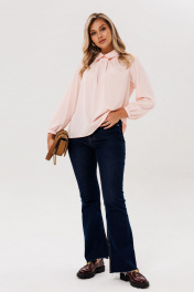 Эта блуза в цвете «персиковый нектар», выполненная в классическом духе, станет истинной жемчужиной вашего гардероба. Ее силуэт, мягко ниспадающий изящными складками, представляет собой образец свободного кроя, который не стесняет движений, даря ощущение легкости и удивительного удобства в течение всего дня. Центральным элементом выступает скругленный воротник-стойка, утонченно обрамляющий линию шеи. Этот изящный акцент декорирован деликатной тесьмой, завязанной в элегантный бант насыщенного темно-синего цвета создавая тонкий и стильный контраст. Неожиданным и очаровательным решением является застежка на пуговицы, расположенная по линии спинки, что придает модели особый шарм и индивидуальность. Этот изящный декоративный ход получает свое продолжение в виде ряда пуговиц, искусно имитирующих фальшь-застежку, что создает целостную и завершенную линию. Универсальность этой блузы позволяет ей быть безупречным выбором как для строгого офисного стиля, задавая тон профессиональной уверенности, так и для школьного ансамбля, внося ноту собранности и аккуратной элегантности в повседневный образ. Она воплощает в себе идеальный баланс между сдержанной красотой, практичностью и непревзойденным удобством, становясь той самой вещью, на которой строится базовый гардероб. Замеры: Размер 44: ОГ-98; ОТ-98; ОБ-106; ОП-34; ДИ-64; ДР-57; Размер 48: ОГ-106; ОТ-106; ОБ-114; ОП-38; ДИ-66; ДР-59; Размер 50: ОГ-110; ОТ-110; ОБ-118; ОП-40; ДИ-66; ДР-59; Размер 52: ОГ-114; ОТ-114; ОБ-122; ОП-40; ДИ-67; ДР-59;