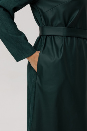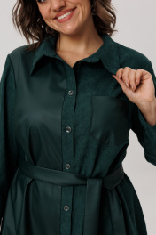 В этом платье воплощена элегантная простота, которая становится настоящим открытием. Его силуэт, строгий и уверенный, плавно устремляется вниз, создавая мягкое, едва уловимое движение. Длина, опускающаяся до середины икры, дарит ощущение утонченной грации и комфорта. Платье-рубашка с длинным рукавом и классическим воротником несет в себе безмятежную гармонию делового стиля, который так ценится в вечной классике. Его фронтальная застежка на пуговицы словно приглашает прикоснуться к деталям, а наличие карманов добавляет образу лёгкую, непринужденную практичность. Съемный пояс предоставляет свободу самовыражения, позволяя в один момент мягко обозначить линию талии, подчеркнув женственность, а в другой — насладиться свободой прямого силуэта. Игра текстур, где встречаются благородный вельвет и гладь кожи, рождает уникальный образ, наполненный свежестью и современным звучанием. Это платье от Анелли — не просто предмет гардероба, а многосезонный спутник, готовый стать основой для бесчисленного множества образов, дарящий своей обладательнице чувство стиля и неизменной уверенности в себе. Замеры: Размер 54: ОГ-118; ОТ-114; ОБ-126; ОП-42; ДИ-114; ДР-56; Размер 56: ОГ-122; ОТ-118; ОБ-130; ОП-42; ДИ-115; ДР-56; Размер 58: ОГ-128; ОТ-124; ОБ-136; ОП-42; ДИ-115; ДР-56; Размер 60: ОГ-132; ОТ-130; ОБ-142; ОП-43; ДИ-116; ДР-57; Размер 62: ОГ-136; ОТ-134; ОБ-146; ОП-44; ДИ-116; ДР-57.