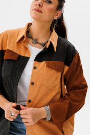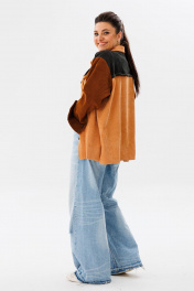 Вельветовая рубашка прямого силуэта от Анелли, сочетающая в себе сладость и мягкость оттенков карамели, – идеальное решение для тех, кто ценит стиль и уют. Отложной воротник на стойке и застёжка на пуговицы добавляют нотки строгости, а спущенное плечо с длинным втачным рукавом на манжете – удобство и практичность. Край кокетки на спинке обработан бахромой, что не может не привлекать внимания. Элементы рубашки сочетаются тремя цветами – это смелое решение, которое даёт возможность собирать образы с любыми вашими вещами! Также на модели собран образ с жилетом 1386 от Анелли. Размер 44-46: ОГ-116, ОБ-116, ОП-41, ДИ-67, ДР-58, ШП-15; Размер 48-50: ОГ-124, ОБ-124, ОП-44, ДИ-68, ДР-57, ШП-16; Размер 52-54: ОГ-132, ОБ-132, ОП-47, ДИ-69, ДР-57, ШП-17; Размер 56-58: ОГ-140, ОБ-140, ОП-50, ДИ-69, ДР-57, ШП-18.