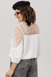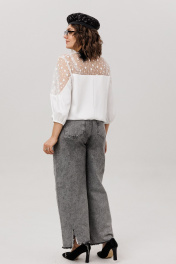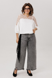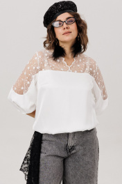 Эта блуза - воплощение изящной женственности и воздушного очарования. Её свободный, струящийся силуэт мягко обволакивает фигуру, даря ощущение лёгкости и невесомости. Фигурный вырез горловины плавными линиями подчёркивает красоту линий, добавляя образу утончённости. Верхняя часть, словно лёгкое кружевное облако с изысканными кокетками на полочке, спинке и изящными вставками на рукавах, переходит в благородный гладкий атлас, мерцающий приглушённым блеском. Рукава три четверти, собранные у низа на тонкую резинку, и такой же аккуратный низ самой блузы создают мягкие, едва уловимые волны, добавляя образу воздушности и динамики. Эта вещь от Анелли - искусное сочетание романтичного кружева и мягкого сияния атласа, которое способно превратить любой день в маленькое событие. Она станет идеальным спутником как для светского праздника, так и для тёплого корпоративного вечера, где царят красота и элегантность. На модели в блузе цвета «фарфоровое кружево» шикарные юбка-брюки 1783 и пушистый жакет 1661. Размер 48: ОГ-110; ОТ-113; ОБ резинка растянута -116; ОП-40; ДИ-61; ДР-47; Размер 50: ОГ-114; ОТ-117; ОБ резинка растянута - 120; ОП-42; ДИ-61; ДР-46; Размер 52: ОГ-118; ОТ-121; ОБ резинка растянута - 124; ОП-42; ДИ-62; ДР-47; Размер 54: ОГ-122; ОТ-125; ОБ резинка растянута - 128; ОП-44; ДИ-62; ДР-46; Размер 56: ОГ-126; ОТ-129; ОБ резинка растянута - 132; ОП-44; ДИ-63; ДР-46; Размер 58: ОГ-132; ОТ-135; ОБ резинка растянута - 138; ОП-46; ДИ-64; ДР-46; Размер 60: ОГ-136; ОТ-139; ОБ резинка растянута - 142; ОП-46; ДИ-65; ДР-47; Размер 62: ОГ-140; ОТ-143; ОБ резинка растянута - 146; ОП-48; ДИ-65; ДР-46.