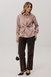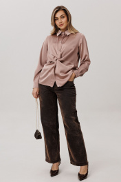 Эта блуза от Анелли - настоящее искусство, воплощенное в нежной, струящейся ткани, которая ласкает кожу шелковистым сиянием Настоящая магия начинается прямо над линией талии, где рождается виртуозная драпировка. Ткань, послушная и пластичная, изящно перекручивается, формируя мягкий, объемный узел из живописных складок. Этот элемент не просто украшение - это скульптурный акцент, который притягивает взгляды, подчеркивает талию и придает всему силуэту уникальный, динамичный характер. Детали довершают образ безупречного качества: строгий отложной воротник на стойке, длинные рукава, заканчивающиеся элегантными манжетами на пуговицу, и аккуратная застежка на петли и пуговицы на притачной планке. Блуза создана для того, чтобы даже самый обычный день наполнился ощущением особенного стиля и утонченной женственности. На моделе в блузе цвета «айс брауни» юбка-кюлоты 1787. Размер 48: ОГ-106; ОТ-102; ОБ-114; ОП-40; ДИ-63; ДР-61; Размер 50: ОГ-110; ОТ-106; ОБ-118; ОП-41; ДИ-63; ДР-62; Размер 52: ОГ-114; ОТ-110; ОБ-122; ОП-42; ДИ-64; ДР-62; Размер 54: ОГ-120; ОТ-116; ОБ-128; ОП-44; ДИ-64; ДР-62; Размер 56: ОГ-124; ОТ-120; ОБ-132; ОП-45; ДИ-65; ДР-62; Размер 58: ОГ-128; ОТ-124; ОБ-136; ОП-45; ДИ-66; ДР-62.