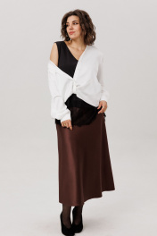 Рожденная из струящегося премиального атласа, эта юбка облегает фигуру нежным прикосновением. Её крой, построенный на косую, дарит удивительную пластику каждому движению, создавая мягкие, текучие волны. Силуэт, давно ставший воплощением элегантной классики, с длиной миди, говорит на языке тихой уверенности. Боковая молния, скрытая в шве, обеспечивает идеальную посадку и служит незаметным порталом в этот мир безупречного силуэта. Юбка от Анелли верная спутница: днем в офисе сохраняет безупречную строгость, а с наступлением вечера, подчеркнутая каблуком, преображается, ловя и мягко отражая свет, словно шёлковая луна. Это не просто предмет гардероба, а основа безукоризненного стиля. На модели в юбке цвета «горький шоколад» кружевной топ 1664 и блуза 1663. Размер 48: ОТ-80; ОБ-110; ДИ-86; Размер 50: ОТ-82; ОБ-112; ДИ-86; Размер 52: ОТ-86; ОБ-117; ДИ-86; Размер 54: ОТ-92; ОБ-122; ДИ-86; Размер 56: ОТ-98; ОБ-127; ДИ-86.