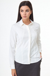 Блуза белая из хлопковой ткани с отложным воротником Anelli 330 молочный