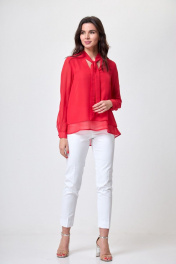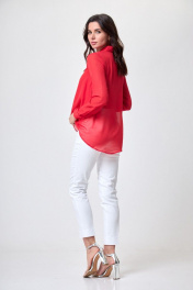 деловая блуза из шифона с воротником-бант и длинным рукавом Anelli 372 коралловый
