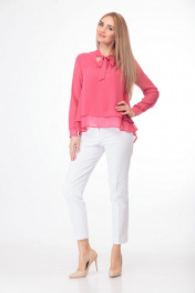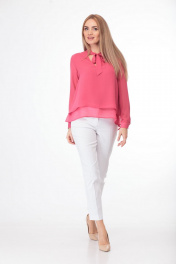 Романтичная блузка из шифона свободного силуэта создаст кокетливое настроение вашему образу! Перед выполнен из двух слоев шифона, не просвечивает, низ оформлен ярусами, спинка блузки прямая, цельная, однослойная. Блуза имеет V-образный вырез горловины, а воротник-стойку можно завязать на шее красивым бантом либо оставить свободным по вашему желанию. Рукава втачные, одношовные, с притачными манжетами, застегивающимися на пуговицу. Блузы представлены в образе с брюками М-228. Замеры: Рост фотомодели – 174 см. Размер фотомодели – 44. ОГ- объем груди; ОТ-объем талии; Об-объем бедер; ДИ-длина изделия; ДР-длина рукава. Размер 42. ОГ- 86; ОТ-106; ДИ-68; ДР – 61. Размер 44. ОГ- 90; ОТ-110; ДИ-68; ДР – 61. Размер 46. ОГ- 94; ОТ-114; ДИ-68; ДР – 61. Размер 48. ОГ- 98; ОТ-118; ДИ-68; ДР – 61.