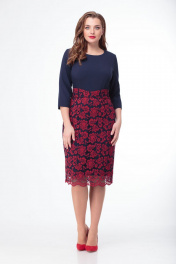 Платье из эко-кожи с поясом, приталенное и на подкладке Anelli 553 синий