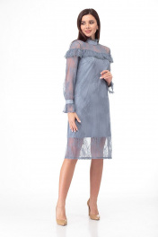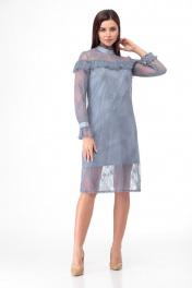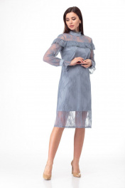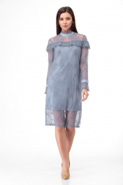 Платье кружевное из тонкого полотна с воланами Anelli 684 морская+волна
