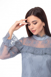 Платье кружевное из тонкого полотна с воланами Anelli 684 морская+волна - фото 9