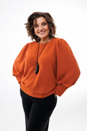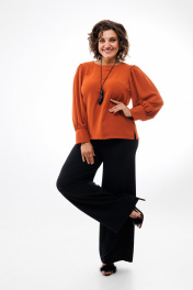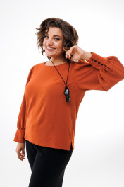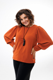 Демисезонная свободная блуза из текстиля с присборенными рукавами Anelli 730 терракот