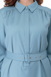 Платье прямого силуэта. выполнено из ткани плательно-костюмной группы в красивых оттенках голубого и терракота. Без подкладки. Кокетки по переду и спинке, сборка создают мягкую линию плеча. Рукав втачной, одношовный со складкой по низу, в которой расположена застежка на петли и пуговицы. Воротник отлажной, на стойке. Застежка платья потайная с притачными планками по переду. В боковых швах расположены карманы и разрезы. Платье дополнено съёмным поясом на пряжке. Каждая деталь этого платья подчёркивает и дополняет друг друга, делая образ элегантным. Замеры: Рост фотомодели – 171 см. Размер фотомодели – 50. ОГ-объем груди; ОТ-обхват талии; ОБ-обхват бедер; ДИ-длина изделия, ДР-длина рукава. Размер 48. ОГ-96; ОТ-116; ОБ-116; ДИ-112; ДР-62. Размер 50. ОГ-100; ОТ-120; ОБ-120; ДИ-112; ДР-62. Размер 52. ОГ-104; ОТ-124; ОБ-124; ДИ-113; ДР-63. Размер 54. ОГ-108; ОТ-128; ОБ-128; ДИ-113; ДР-63.