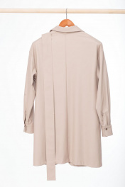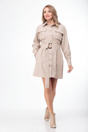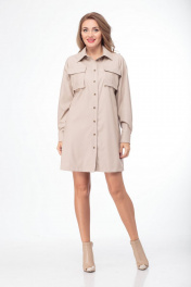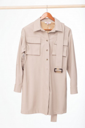 Платье-рубашка из эко-кожи с накладными карманами и ремнем Anelli 800 бежевый