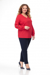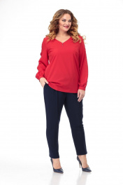 Блуза из текстиля с романтичным рукавом и V-вырезом Anelli 826 красный