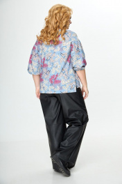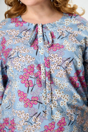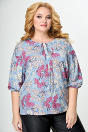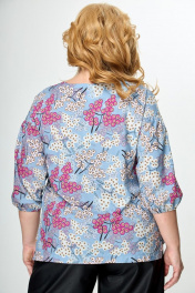 Блуза приталенная с воротом и асимметричным низом Anelli 831 голубой+ягоды