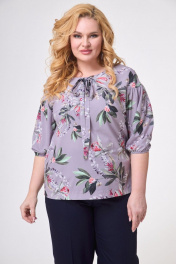 Блуза прямого силуэта с асимметричным низом из текстиля Anelli 831 лиловый_цветы