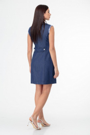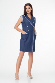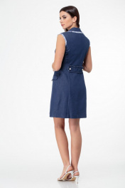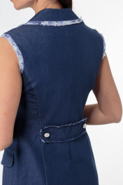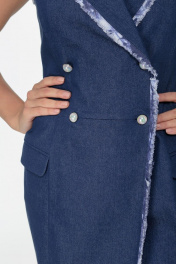 Джинсовое двубортное платье-жилет с бахромой и карманами Anelli 841 синий