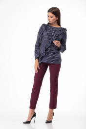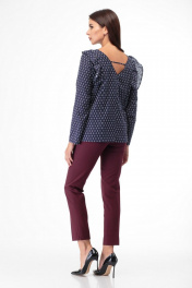 Хлопковая блузка с красивым воланом - сделает ваш образ неповторимым. Блуза прямого силуэта, умеренного объёма, средней длины. На передней части выполнена V образная кокетка , которая оформлена ассиметричным рюшем, переходящим на спинку. Вырез на спинке V образный, на переде округлый. Рукав втачной, одношовный, длинный. Подойдет для повседневной носки. При съемке для образа использованы брюки Anelli Style – 228 бордо. Замеры: Рост фотомодели – 17 см. Размер фотомодели – 44. ОГ- объем груди; ОТ-объем талии; ДИ-длина изделия; ДР-длина рукава. Размер 42. ОГ- 94; ОТ-96; ОБ-96; ДИ-62.5; ДР – 58.5 Размер 44. ОГ- 98; ОТ-100; ОБ-100; ДИ-63; ДР – 59 Размер 46. ОГ- 102; ОТ-104; ОБ-104; ДИ-63.5; ДР – 59.5 Размер 48. ОГ- 106; ОТ-108; ОБ-108; ДИ-64; ДР – 60