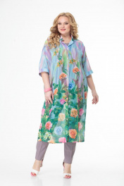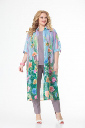 Комплект блуза, брюки и платье-рубашка из шифона Anelli 858 голубые_тона