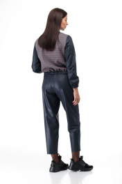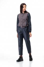 Модный демисезонный бомбер и брюки с имитацией кожи Anelli 902 клетка